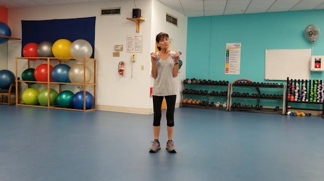 Not everyone is comfortable getting down on the floor like many stability ball exercise videos call for, so this one will keep you comfortably in a standing or sitting position the whole time. Improve your strength, endurance and balance all at once.
